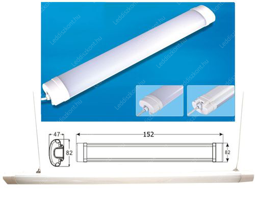 Por és páramentes LED lámpatest 150 cm, 74W, 7450 lumen, 58mm, 4000K, közép fehér. Led Tri-proof, IP65 vízálló ipari lámpa. Life Light led 3 év garancia!
