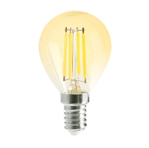 Led Filament körte égő 4W, borostyán burás dekor Led. 45mm, 350 Lumen, 40W izzó helyett. E14, 2100K, extra meleg fehér, nem vibrál! Life Light Led.