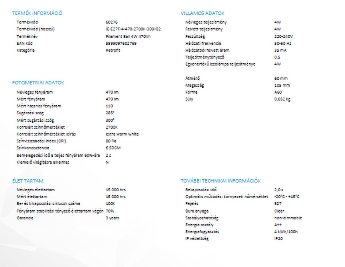 | Fényáram | 470 lumen |