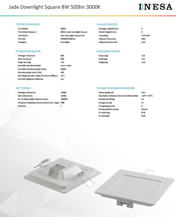 Inesa Led panel 12W négyzet, 900 lumen, 3000 kelvin, meleg fehér. Beépíthető, 6 col. Nem vibrál! Magyarország legolcsóbb Led paneljai!