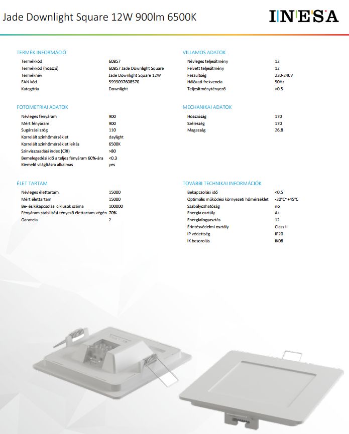 Inesa Led panel 12W, négyzet, 900 lumen, 6500 kelvin, hideg fehér. Beépíthető, 6 col. Nem vibrál! Magyarország legolcsóbb Led paneljai!