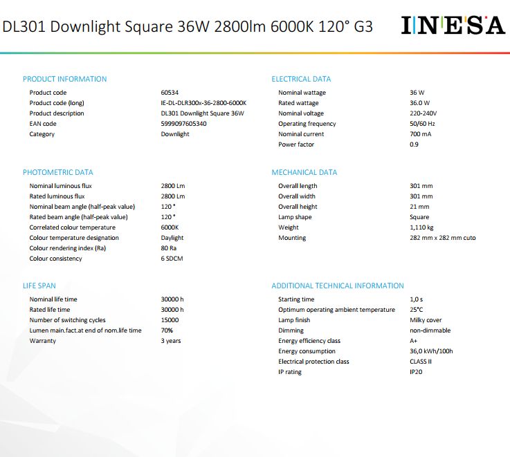 Inesa Led panel 36W, beépíthető világítás, 6000K, hideg fehér, 2800 lumen. Nem vibrál! Nagy Led panel helyére fővilágításnak is alkalmas!