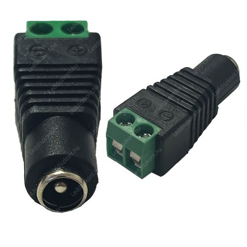 Lengő DC tápcsatlakozó, anya. Fémházas tápegységekhez közvetlenül csatlakoztatható az 5 méteres led szalag végén lévő apa dugóval vagy forrasztással!