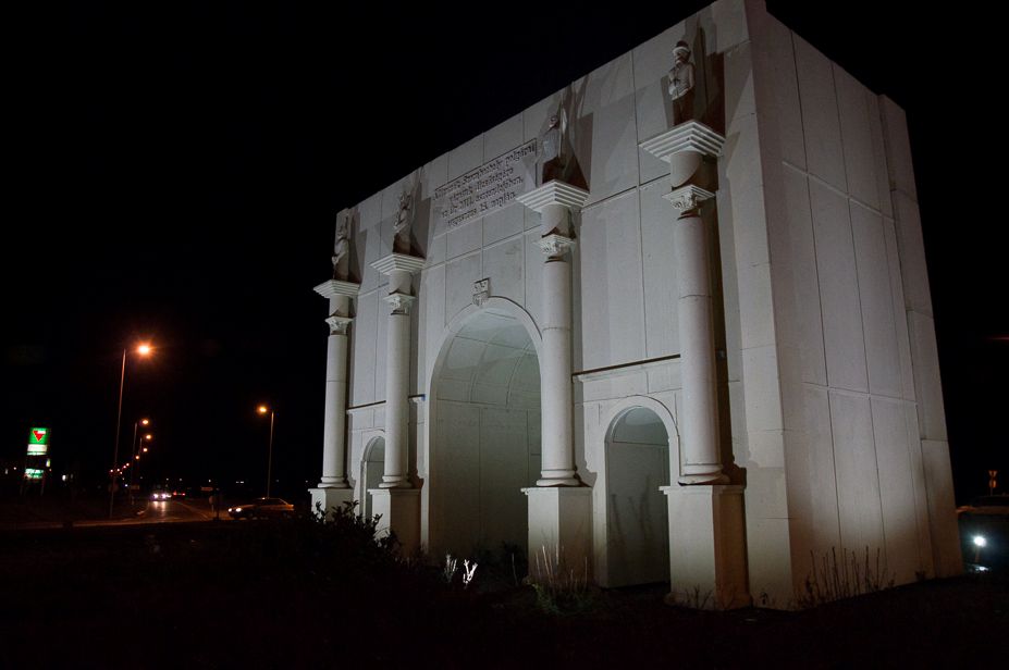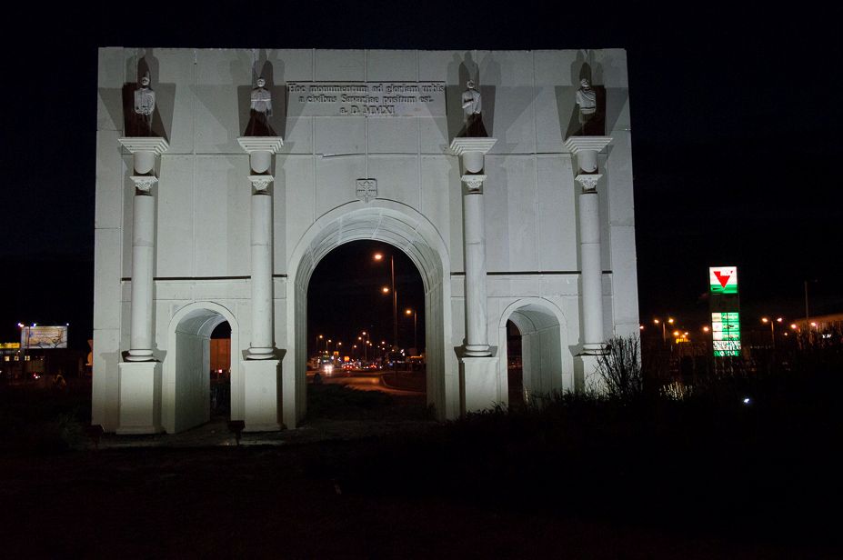 6, Szombathelyi diadalív megvilágítása 10db Led reflektor, 50W, A level, 4500 Lumen, 60°, hideg fehér reflektorral.
